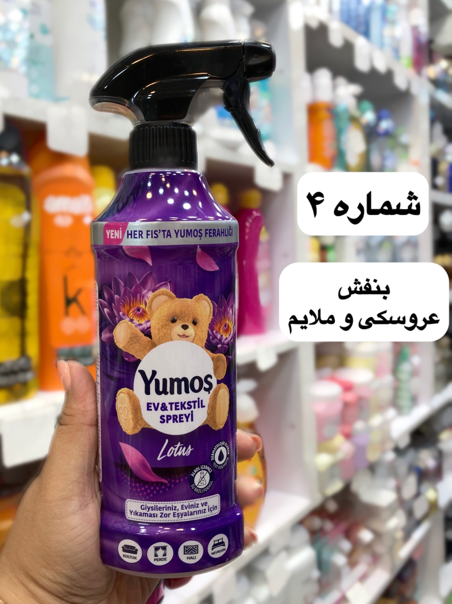 اسپری خوشبو کننده محیط یوموش ترکیه ، محصول بسیار کاربردی و مناسب ، ماندگاری بالا ، مناسب استفاده بر روی مبل ، پرده و سایر سطوح … و سرویس بهداشتی . برای استفاده از این اسپری تنها کافیست در فاصله تقریبا 30 سانتی متری محیط مدنظر را چند بار اسپری کنید تا بوی مطبوعی در محیط موردنظر ایجاد شود.